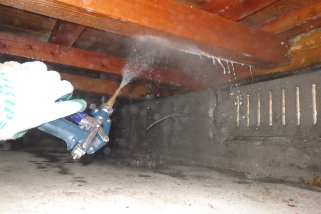 今回はシロアリ予防工事を行わせていただきました。 玄関ポーチ部分も薬剤にて注入させていただきお