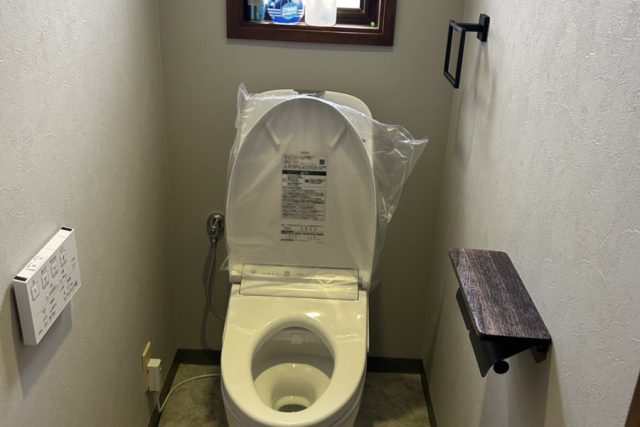 水漏れがありましたので弊社の最短でトイレ交換工事を行いました。