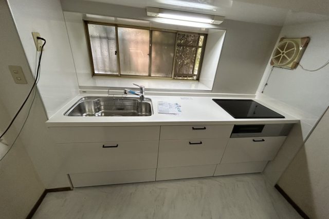 キッチン交換・ダウンライト5個変更・天井・壁クロス張替・フロアタイル増し張り・キッチンカウンター変更