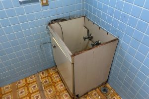 床の張り替え クッションフロア 洗濯機蛇口交換 洗濯機排水トラップ設置 洗面化粧台 TOTO Vシリーズ 工事費込み 税込み 162,800円 |