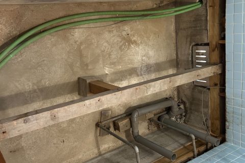 今回はゼヒトモさんからの案件です。 洗濯機からの水漏れが起き 床などもかなり下がっており 危ない状態でした。 設置業者や他の業者に洗濯機の水漏れ依頼をしても 解決なく出張費のみが取られていくとのことでした。 結論としては排水のジャバラが2~4センチぐらいしか差し込んでおらず 洗濯機の振動で抜けていることがほぼほぼ原因と推定 一旦工事に入るまでは延長して対応したところ 問題なくなりました。 そして工事当日床を根太から取替、クッションフロア設置し 洗面化粧台は砂壁でビスが聞かなかったので裏の柱を探し 裏に9ミリのコンパネを設置することで しっかりと設置することにしました。 お客様もかなり喜ばれ口コミもかいて頂き 誠にありがとうございました。